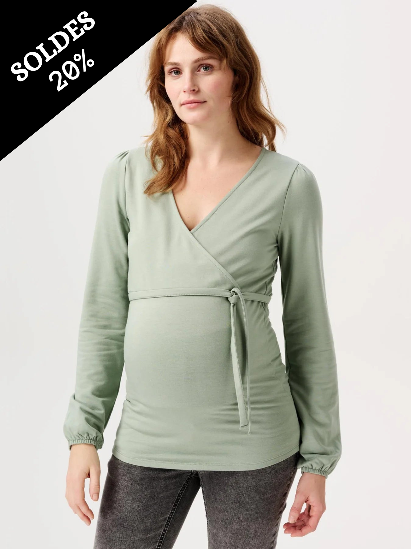 Blouse de grossesse et d'allaitement avec décolleté croisé sauge chaud et doux !