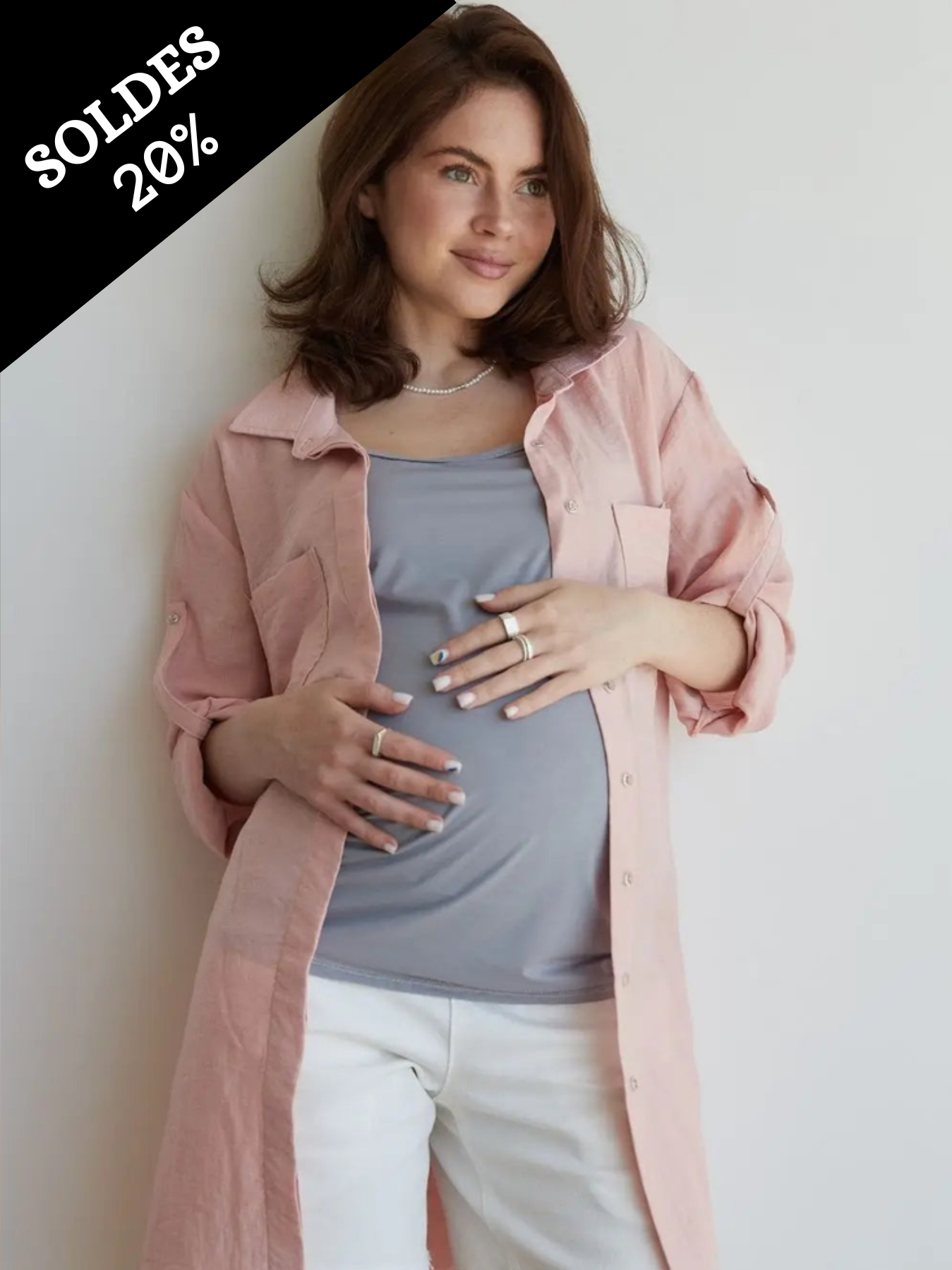 Un chemisier réglable dans le dos tout en douceur qui accueille parfaitement la silhouette des futures mamans au fil des mois.