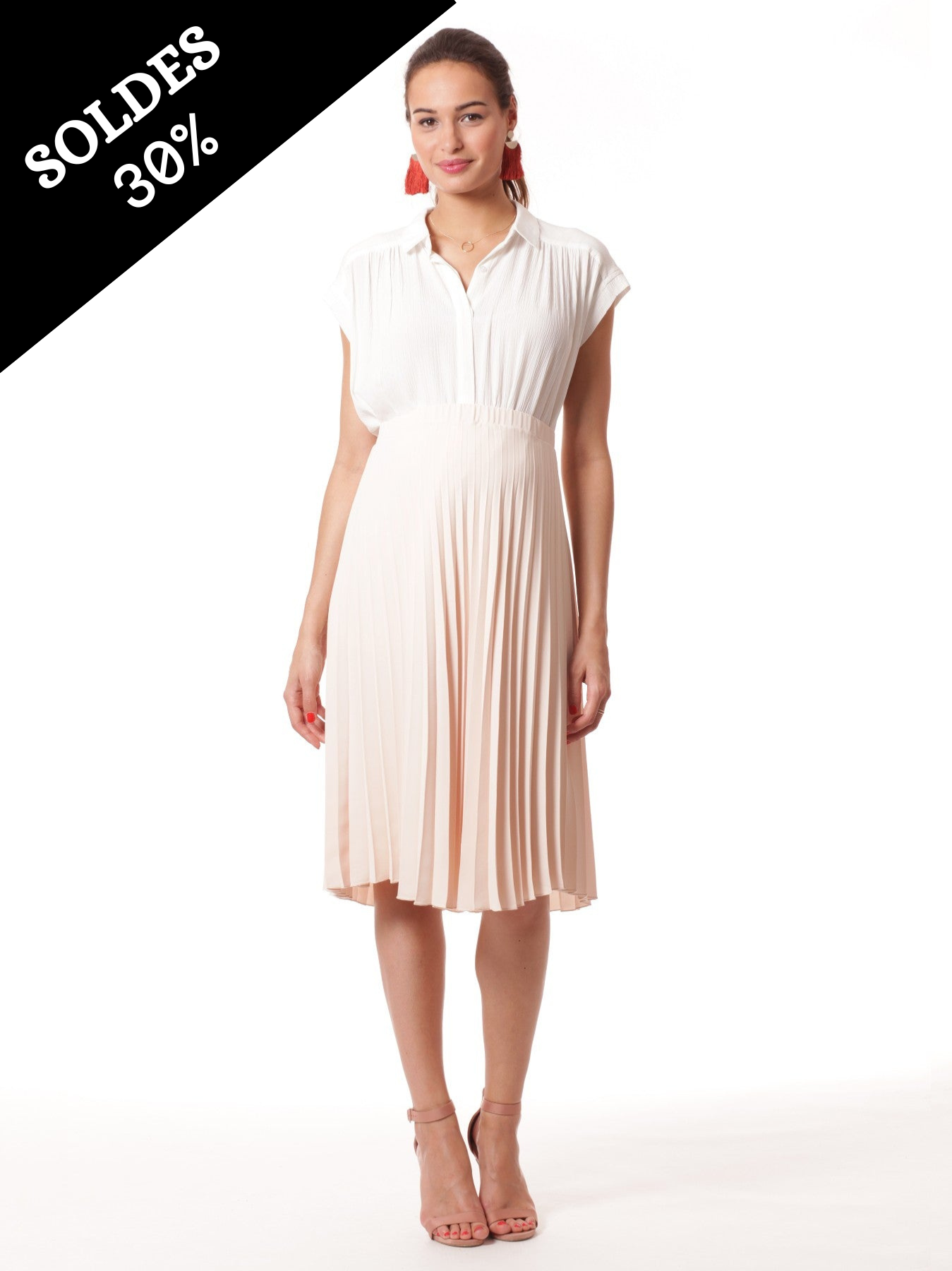 Jupe de grossesse plissée Charlotte de couleur Nude, une pièce élégante à porter aussi bien pour vos événements festifs que pour le quotidien !