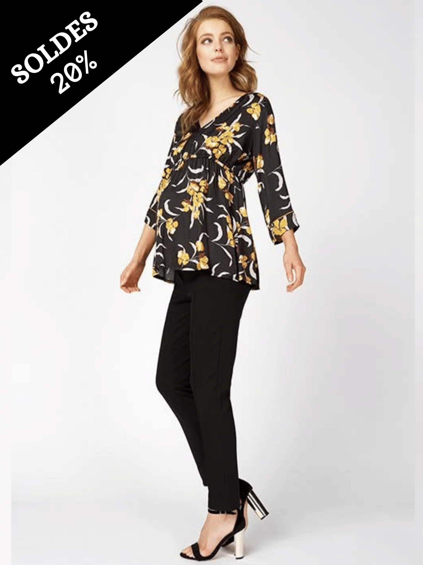 Un joli haut chic fluide qui met en évidence le petit ventre rond avec élégance.