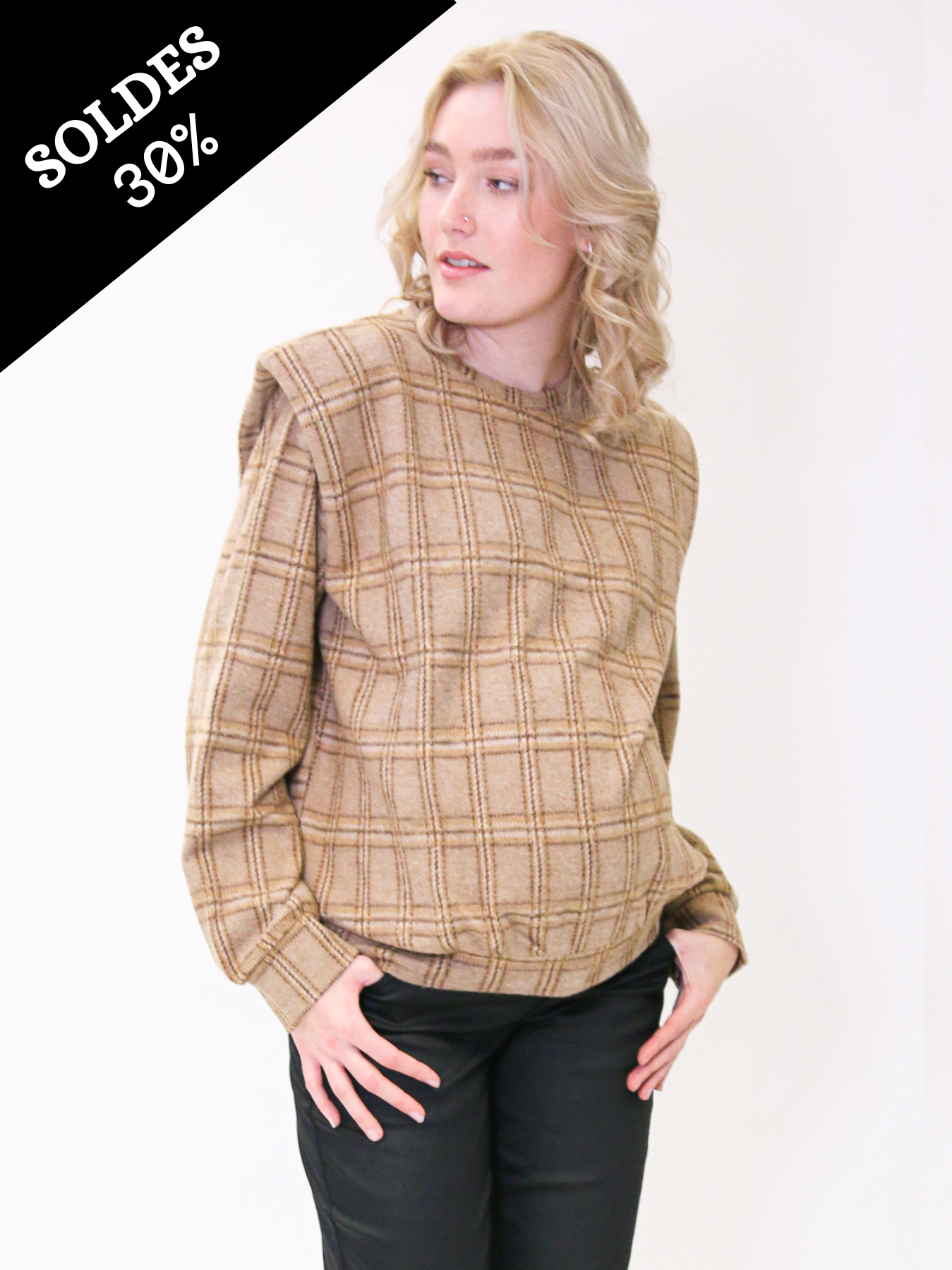 Pull de grossesse original à carreaux, bien chaud et très doux.