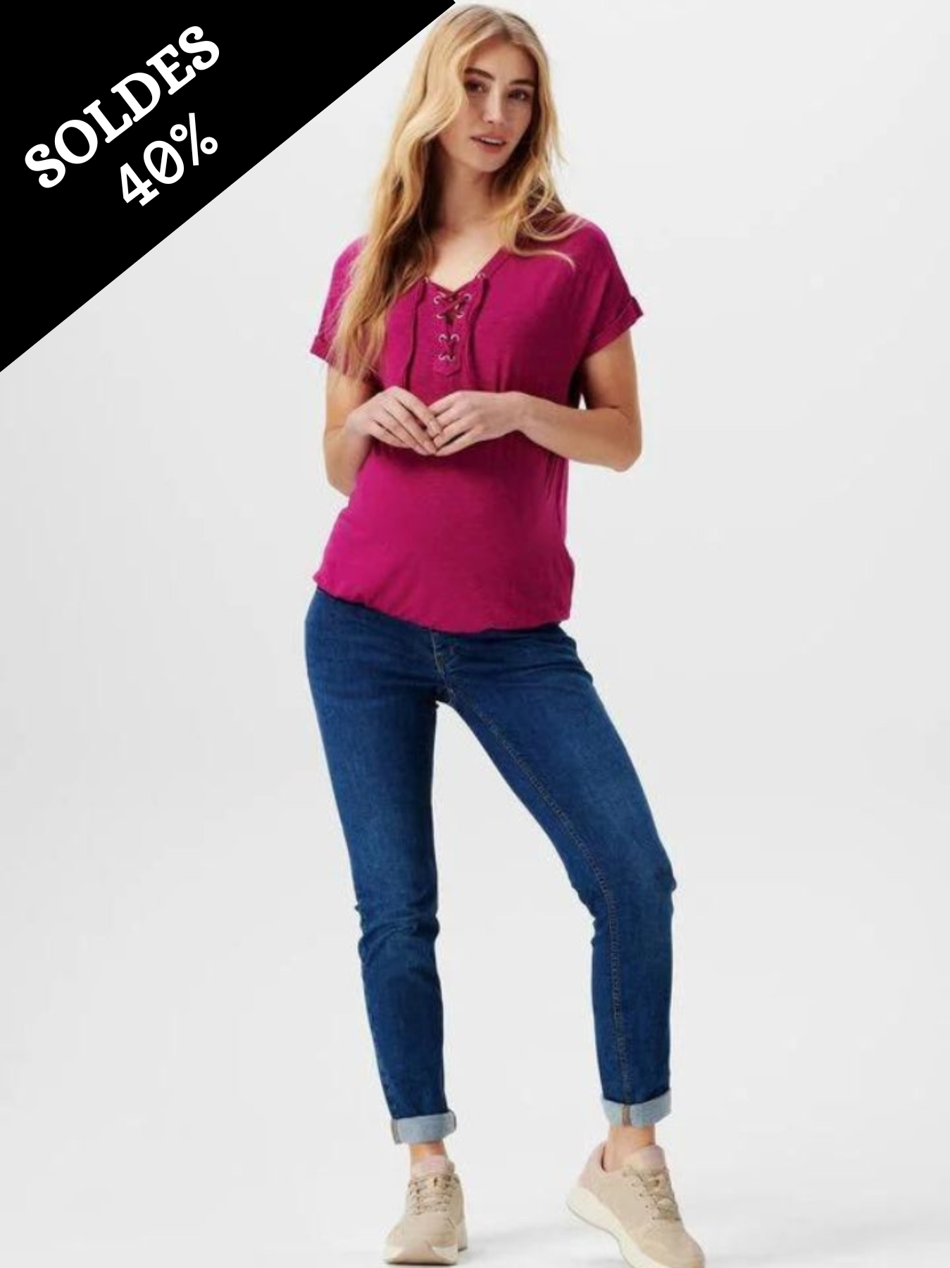 T-shirt de maternité avec décolleté en V à laçage