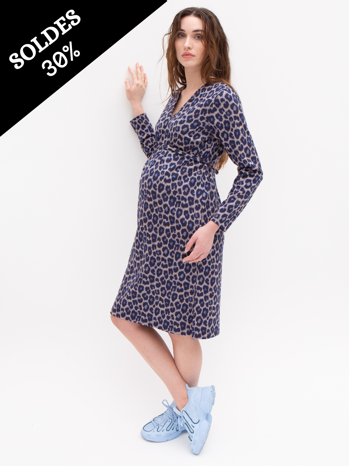 Maternity dress with animal print and side slits by the Belgian brand Fragile!