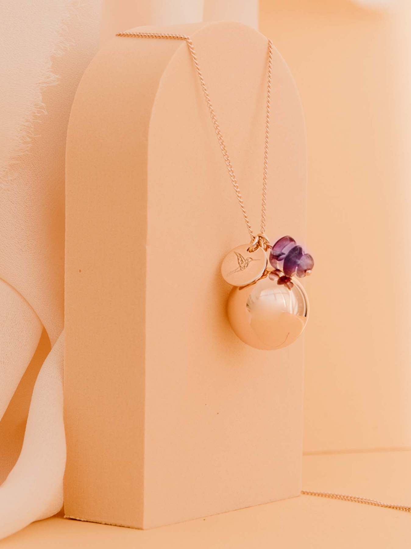 Voyagez avec le joli bola de grossesse Colibri, vous allez apprécier ce modèle orné de ses 3 jolies pierres.