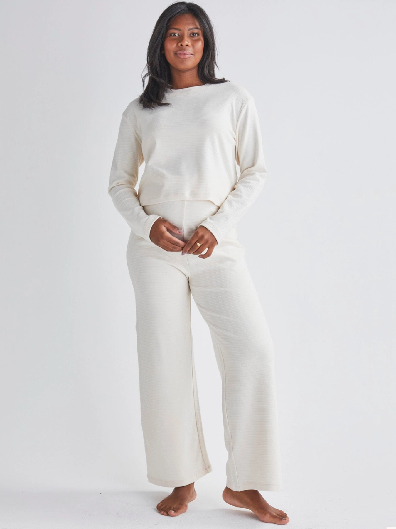 Mooie zwangerschapsset gemaakt van een hoogwaardige stof die oneindig zacht is! Dit model past zich perfect aan de evolutie van het silhouet door de maanden heen aan.