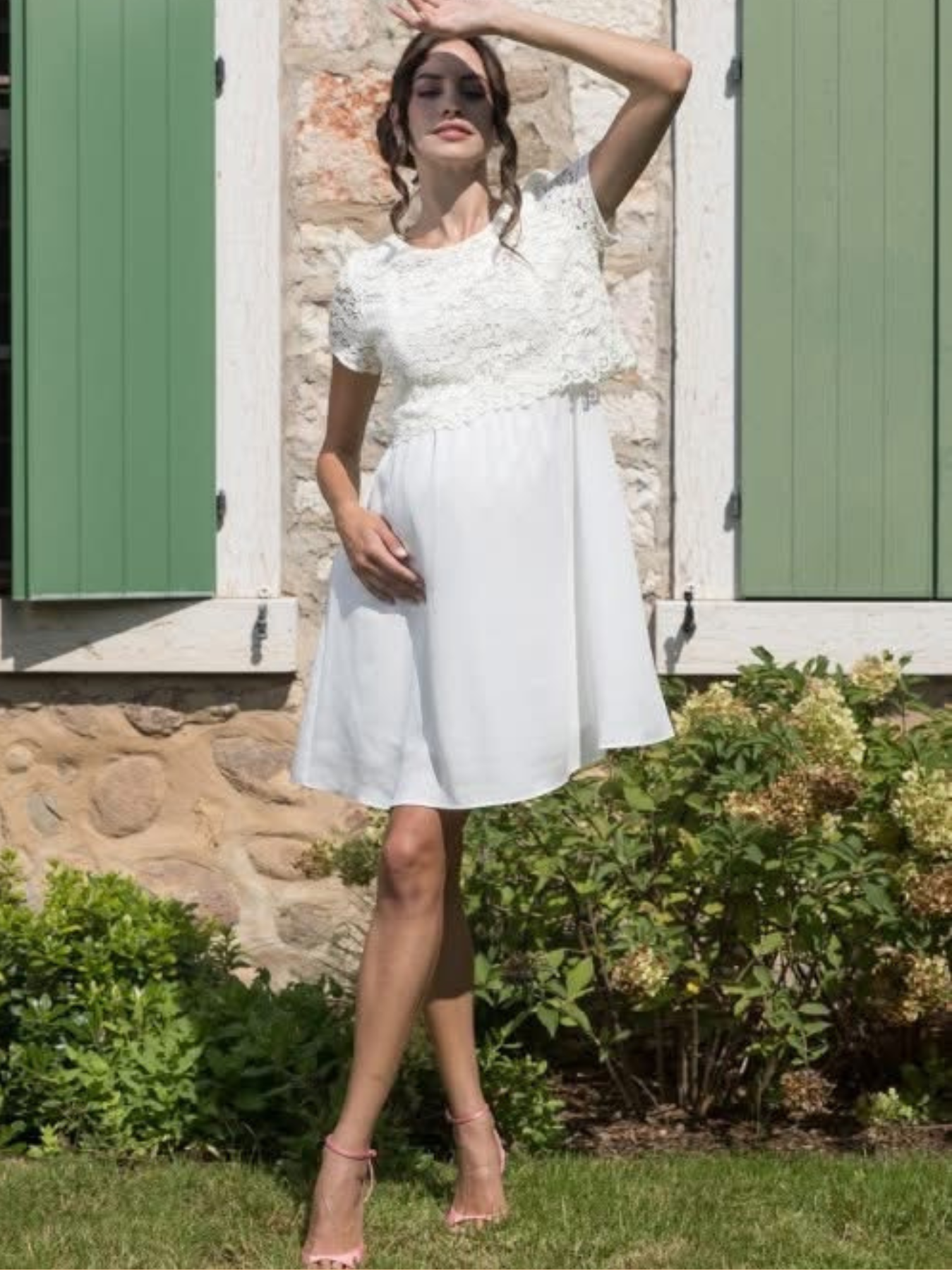 De elegante zwangerschaps- en voedingsjurk Aurora is perfect voor een doop, communie of een vrolijke uitstraling op uw feestjes deze zomer.