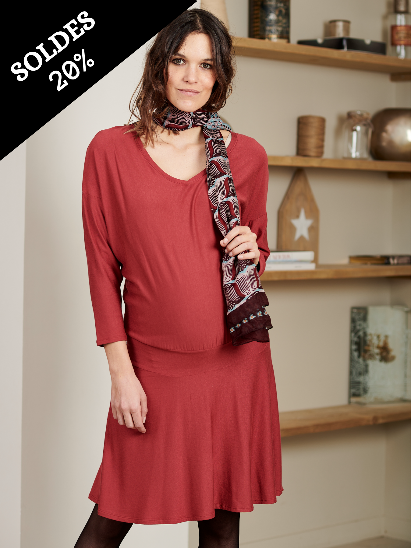 • Hayat zwangerschaps- en voedingsjurk in hibiscuskleur,